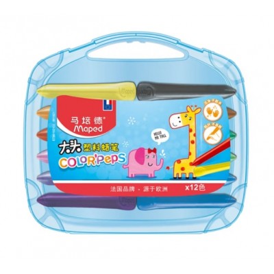 马培德Maped 大头塑料蜡笔12色 儿童蜡笔不脏手安全无味粗杆易握 幼儿园彩笔宝宝画画笔绘画工具