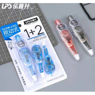 乐普升9759A修正带按动式可替换芯三支装透明薄膜涂改带单卡装(12卡/包)