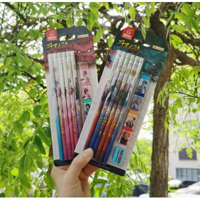 佳美8085斗罗大陆铅笔HB带皮头12支卡装送橡皮卷笔刀可选款