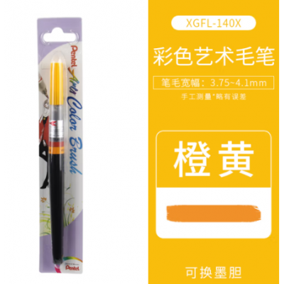 派通 日本Pentel毛笔 XFL携带书法笔 可更换墨胆 绘图描边练字抄写用 小毛笔艺术笔书法练习 XGFL-140X 橙黄色