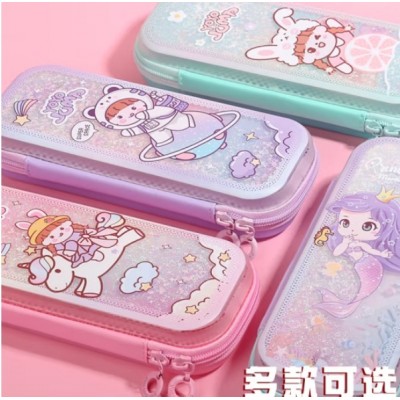 小灵精小学生男生女生款文具盒笔盒卡通拉链流沙笔盒3864混色