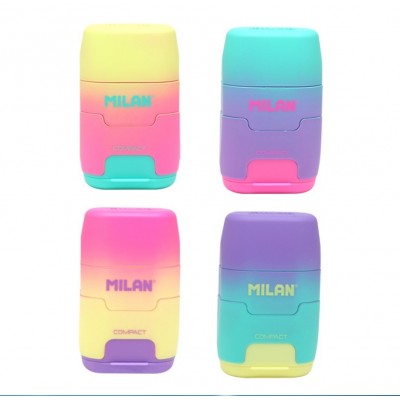 米兰4721116 双孔卷笔刀+橡皮炫彩色学生文具三合一单个装(16个/盒)