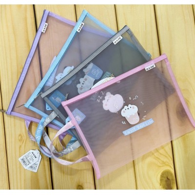 首页 > 办公用品 > 文具 > 洪星A4网纱收纳袋拉链袋4色卡通文件袋学生独立包装8647混色单包装(4个/包)