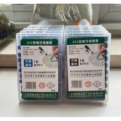 英雄热敏可擦墨囊钢笔墨胆一次性10支塑料盒装3.4mm口径369 蓝色