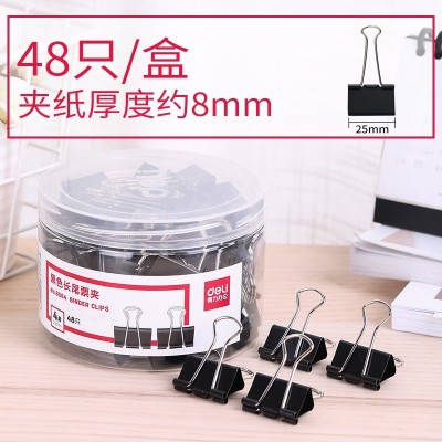 首页 > 办公用品 > 文具 > 得力DELI 长尾夹 中号金属长尾夹燕尾夹票据夹 凤尾夹文件夹子 鱼尾夹 资料试卷夹 办公用品 8564 黑色长尾夹 25mm 48个/筒