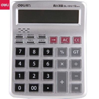 首页 > 办公设备 > 计算器 > 得力(deli)语音计算器 真人发音12位大屏幕大按键财务办公门店用计算机 1512银色 透明大按键计算器