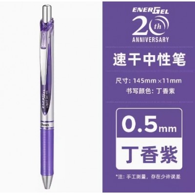 日本pentel派通中性笔透明杆彩色芯按动BLN75TL0.5单支装(5支/盒)紫