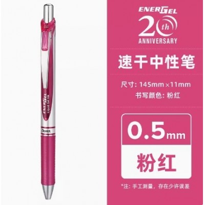 日本pentel派通中性笔透明杆彩色芯按动BLN75TL0.5单支装(5支/盒) 粉