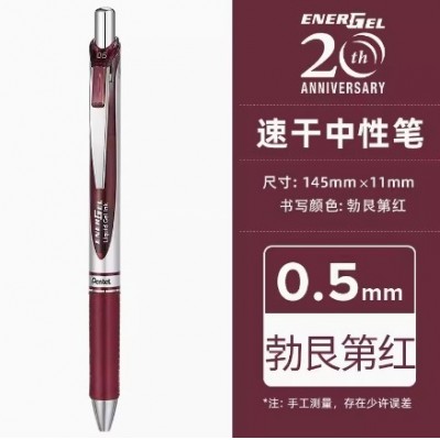 日本pentel派通中性笔透明杆彩色芯按动BLN75TL0.5单支装(5支/盒)勃艮第75Z-BG