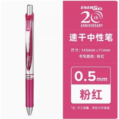 日本pentel派通中性笔透明杆彩色芯按动BLN75TL0.5单支装(5支/盒)粉75Z-P
