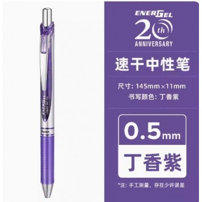 日本pentel派通中性笔透明杆彩色芯按动BLN75TL0.5单支装(5支/盒)丁香紫75Z-V3