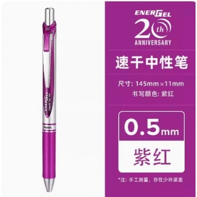 日本pentel派通中性笔透明杆彩色芯按动BLN75TL0.5单支装(5支/盒)玫红75Z-V4