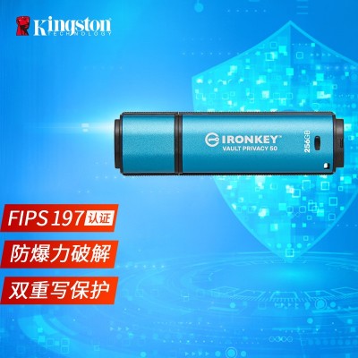 金士顿256GB USB3.2 Gen1 U盘 IKVP50 256位AES专业硬件金属加密 双重写保护 读速高达230MB/s