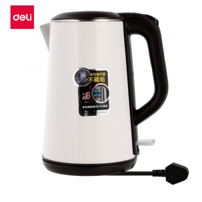 得力(deli) 85604 电热水壶 304不锈钢 双层隔热烧水壶 1.6L大容量 自动断电 白色