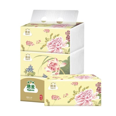 洁云 162005/162218 国色200抽双层塑包面巾纸3包/提 16提/箱