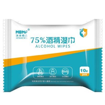 沐本棉品 75%含量湿巾 便携式杀菌消毒湿巾纸巾 10片/包 10包/组 500包/箱
