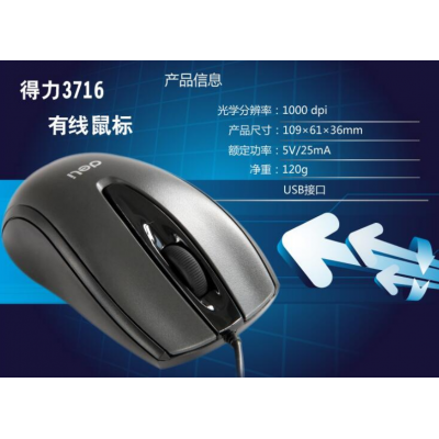 首页 > 办公设备 > 鼠标器 > 得力 3716 有线鼠标(黑)对称设计