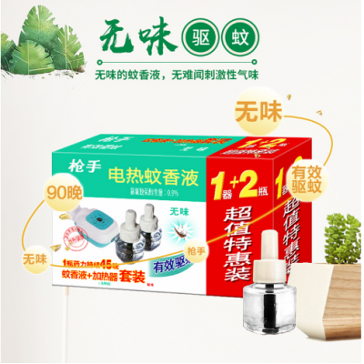 枪手 电热蚊香液套装 无导线 无味 1器+2瓶 无香型 驱蚊液 电蚊香