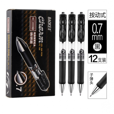 宝克(BAOKE)PC196 按动中性笔 签字笔 处方笔 0.7mm黑色12支