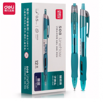 得力(deli) S08 墨蓝色 臻顺滑按动中性笔签字笔 0.5mm子弹头 12支/盒