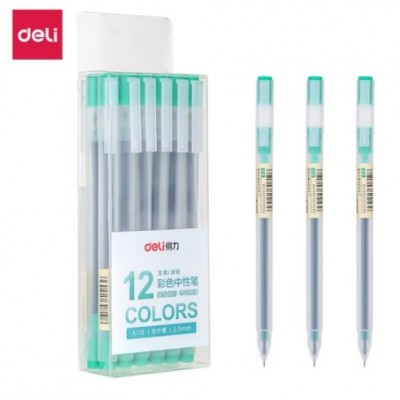 得力(deli)彩色中性笔学生笔记手账笔0.5mm多色套装多色彩水笔全针管签字笔学生文具 【绿色 12支装 A119】
