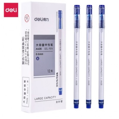 得力(deli) 直液式中性笔走珠笔写字笔 学生考试笔 办公中性笔 0.5mm A426 针管式 蓝色12支