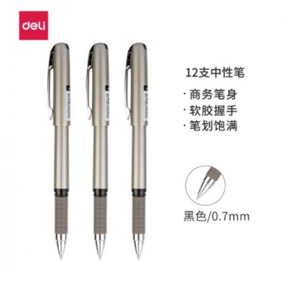 得力(deli)0.7mm黑色子弹头中性笔水笔签字笔 办公用品 12支/盒DL-S26