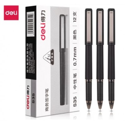 首页 > 办公用品 > > 得力(deli)S35中性笔学生签字笔黑色水笔0.7mm子弹头写字笔 学生用品 12支/盒