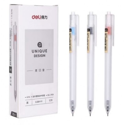 首页 > 办公用品 > > 得力(deli)雾透按动中性笔 简约无印风学生用水笔签字笔简约黑色 0.38mm全针管 A115 【无印风笔】12支装