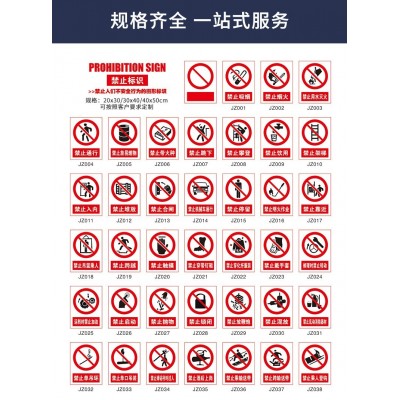 PVC警示牌/标识牌/禁止标识 亮膜贴20*30cm(下单备注详情页对应内容编号)10张装 亮膜贴20*30cm