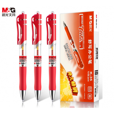 晨光(M&G)K35红色0.5mm经典子弹头中性笔按动签字笔水笔 12支/盒
