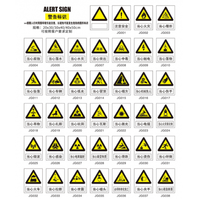 首页 > 建筑建材 > 其他防护用品 > PVC警示牌/标识牌/警告标识 20*30cm 1mm铝板+反光(下单备注详情页对应内容编号)5张装 20*30cm