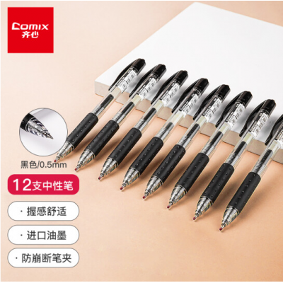 首页 > 办公用品 > > 齐心中性笔K36 0.5mm按动式学生用作业考试刷题笔水性笔办公签字笔 12支/盒黑色