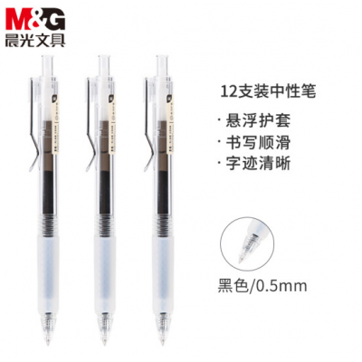 晨光中性笔0.5mm黑色中性笔 悬浮护套签字笔 本味系列 12支/盒AGPH7302
