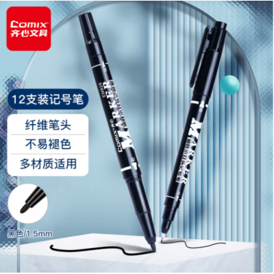 首页 > 办公用品 > > 齐心 小双头记号笔 勾线笔马克笔12支装 黑色 EM829