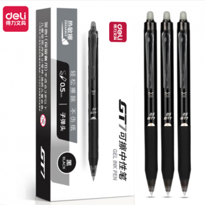 得力 GT7 按动可擦中性笔0.5mm子弹头签字笔 12支 黑色