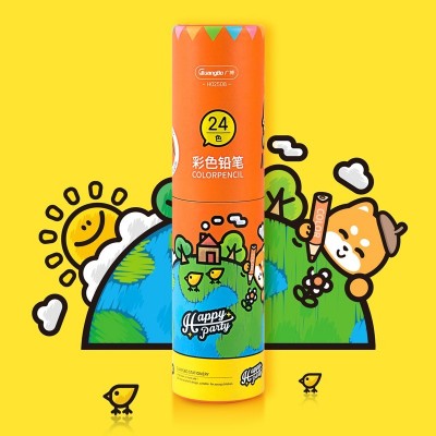 广博(GuangBo)24色原木彩色铅笔 三角杆儿童画笔彩色铅笔单个纸筒装 H02508
