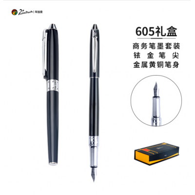 毕加索 钢笔 亮黑色钢笔礼盒包装 签字笔金属学生练字墨水笔 亮黑色 一套