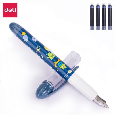 得力S691钢笔 矫姿签字笔 学生正姿可擦纯蓝钢笔 (可擦纯蓝)(1明尖+1暗尖+4墨囊/卡)