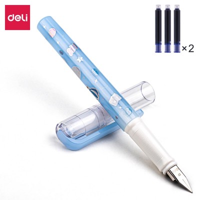得力A930练字钢笔 明尖矫姿签字笔 学生正姿可擦纯蓝钢笔 (可擦纯蓝)(1支笔+6墨囊/卡)