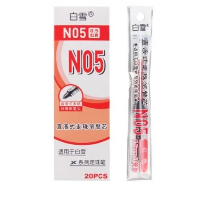 白雪(snowhite) X55直液式走珠笔针管型中性笔彩色水性笔黑蓝红笔考试专用手账笔办公学生水笔 N05配套笔芯-红色(20支盒装)