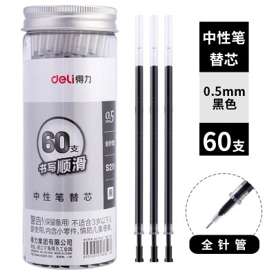 得力S211中性笔芯0.5mm(黑) 中性笔水笔签字笔替芯 办公用品 (60支/桶)