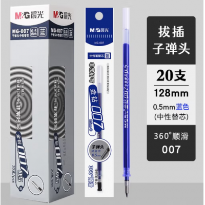 首页 > 办公用品 > 文具 > 晨光(M&G)MG007 0.5mm 中性笔笔芯全针管替芯 蓝色 20支/盒