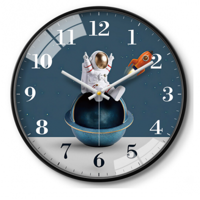 首页 > 仪器仪表 > > 摩门 14英寸35cm挂钟 学校幼儿园卡通宇航员石英钟 金属黑 HK0377