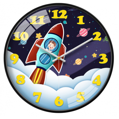 首页 > 仪器仪表 > > 摩门 12英寸30cm卡通火箭挂钟 幼儿园学校钟表 金属黑 HE0307