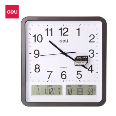 得力(deli) 8823万年历温湿度显示创意时钟 客厅卧室低噪音挂钟