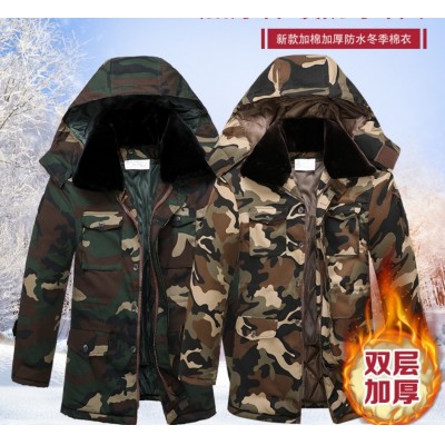 冬季中长款迷彩棉大衣男防水加厚劳保棉服冷库防寒保暖工作大棉袄混色尺码(165-190)