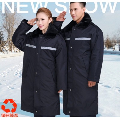 保安大衣冬季加厚防寒多功能棉衣男女勤务棉服物业黑色中长反光条加长加厚款尺码(165-190)