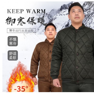 首页 > 装具 > 普通服装 > 冬季加绒加厚棉衣棉裤套装男中老年防寒服养老院司机冷库工作棉服混色套装尺码(175-190)