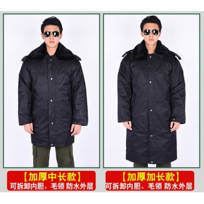 首页 > 装具 > 普通服装 > 冬季保安大衣多功能防寒服反光黑色大衣棉大衣军大衣加厚棉服加厚加长款尺码(165-190)